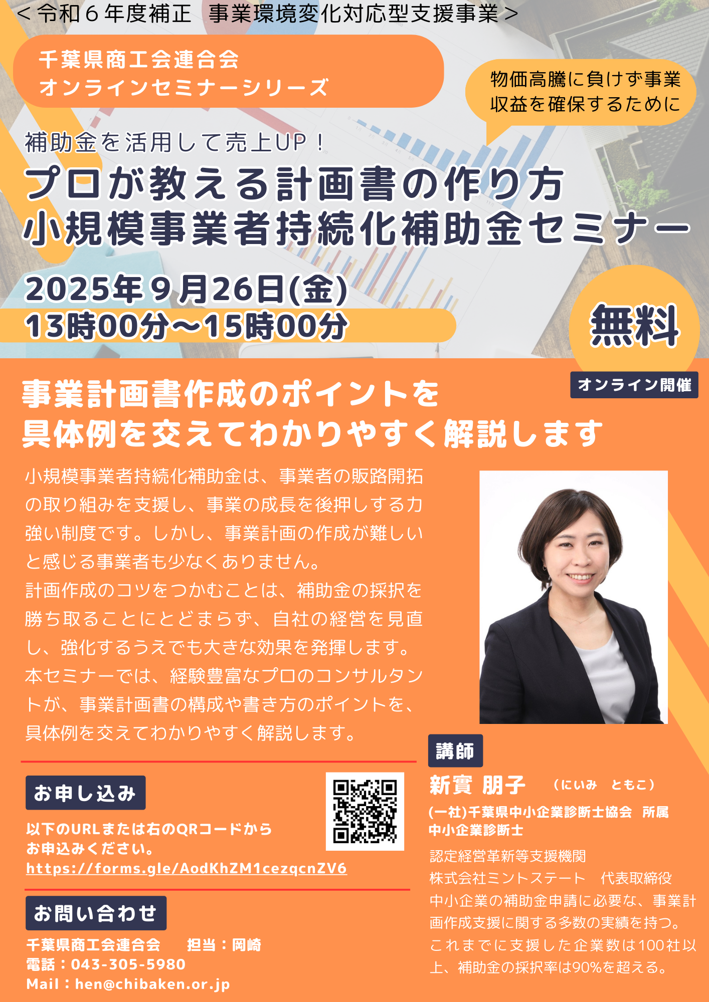 千葉県商工会連合会では標記オンラインセミナーを9月26日に実施します。