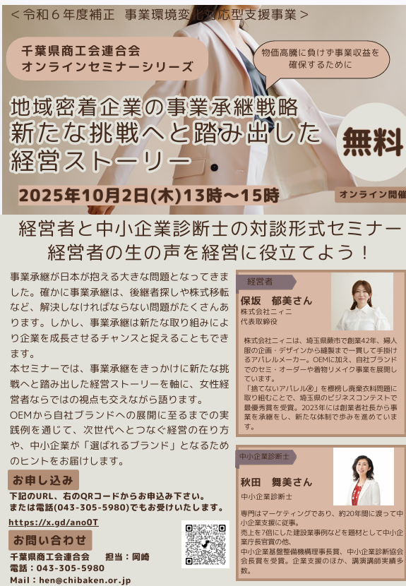 千葉県商工会連合会では標記オンラインセミナーを10月2日に実施します。